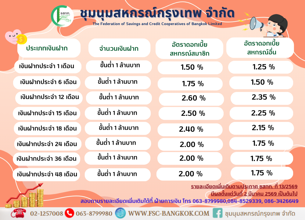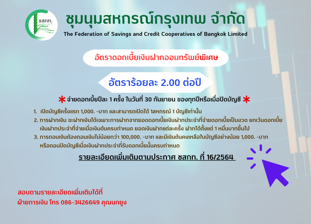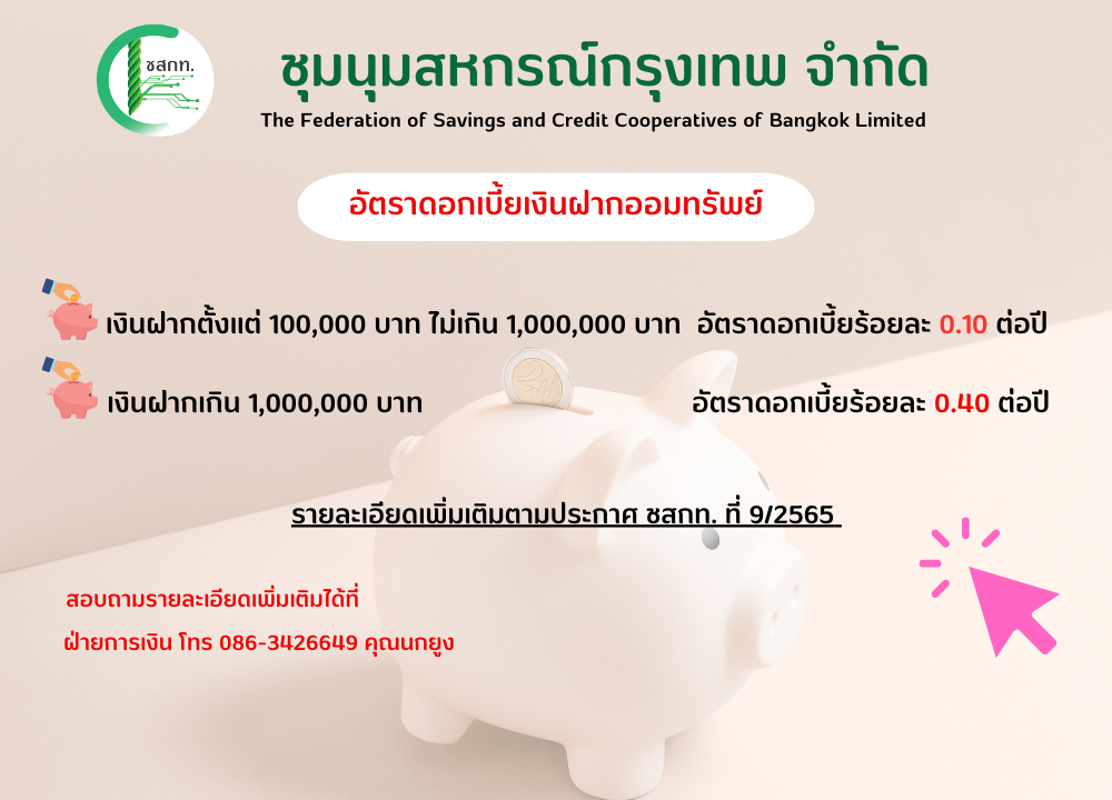บัญชีเงินฝากธนาคารของชุมนุมสหกรณ์กรุงเทพ จำกัด