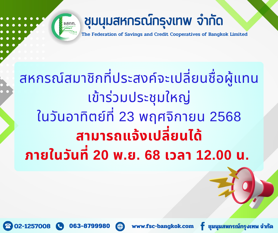 บัญชีเงินฝากธนาคารของชุมนุมสหกรณ์กรุงเทพ จำกัด