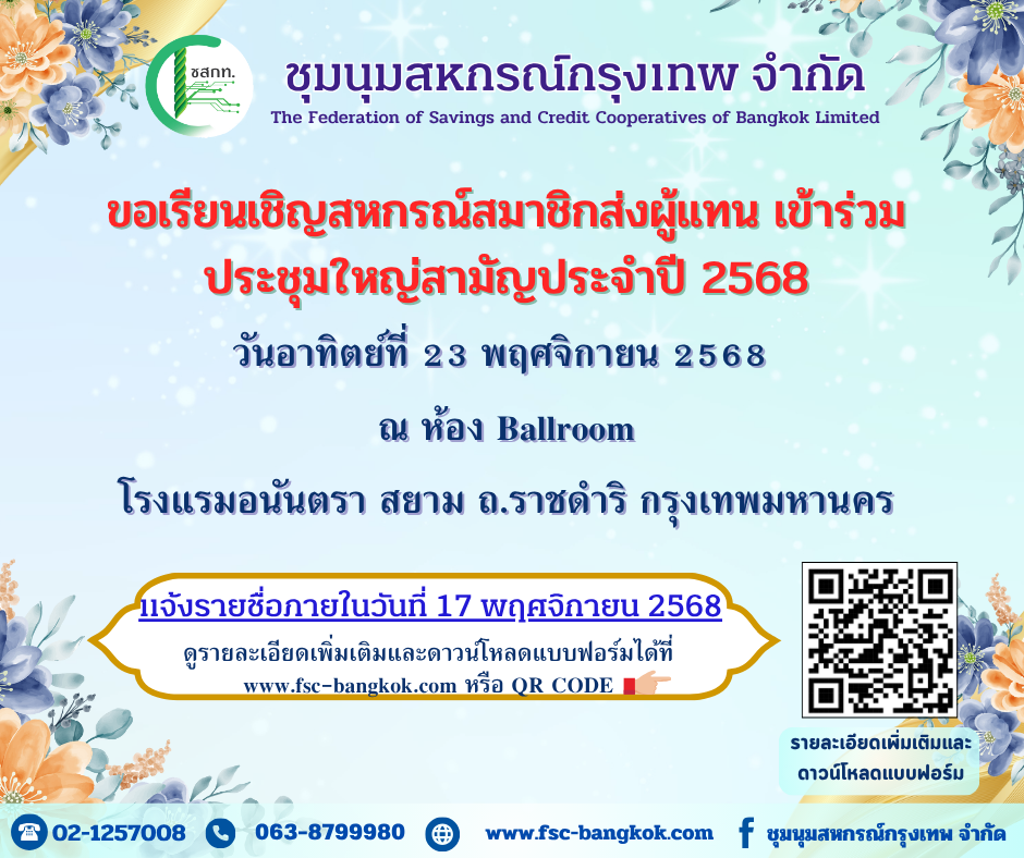 บัญชีเงินฝากธนาคารของชุมนุมสหกรณ์กรุงเทพ จำกัด