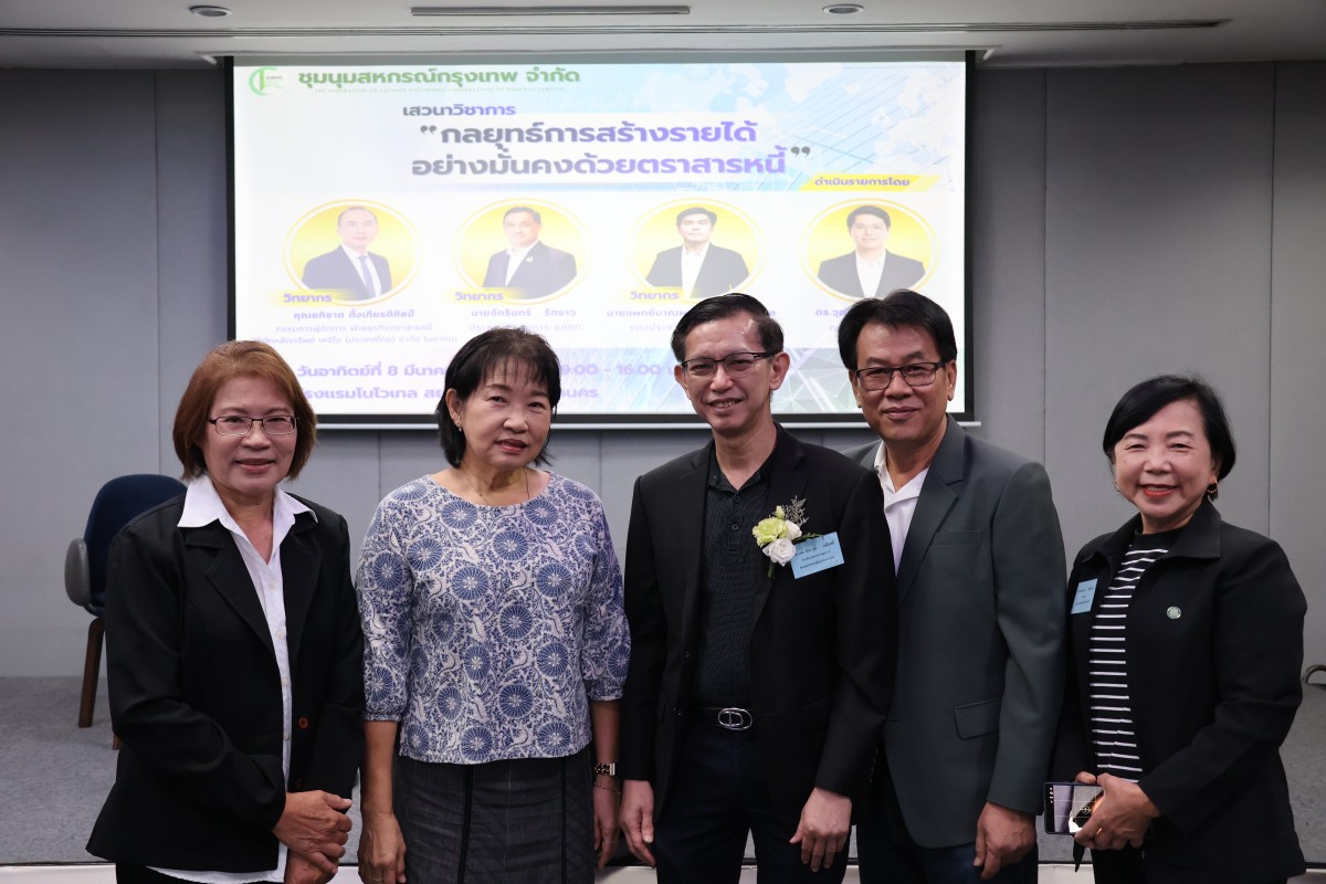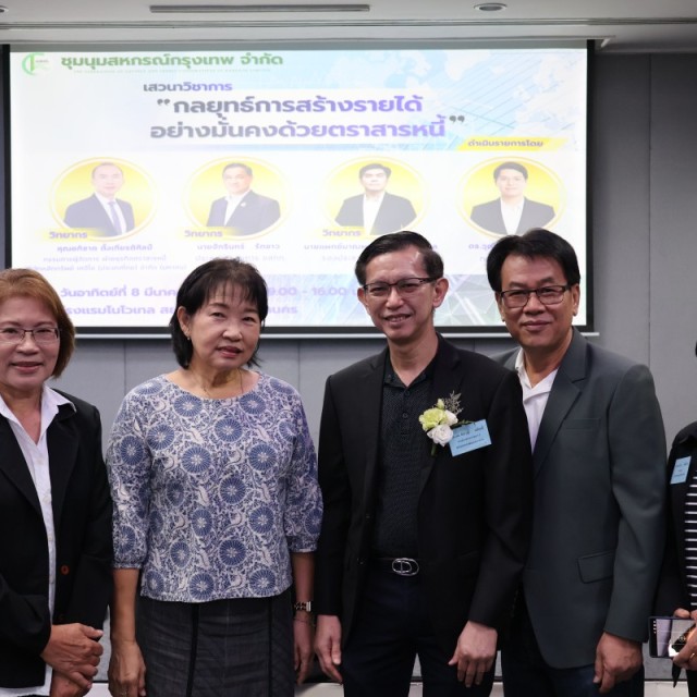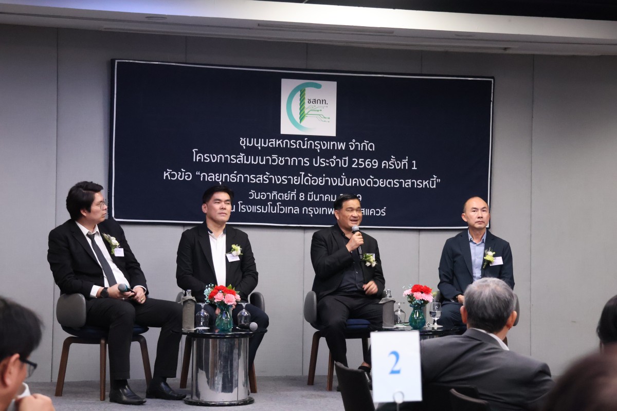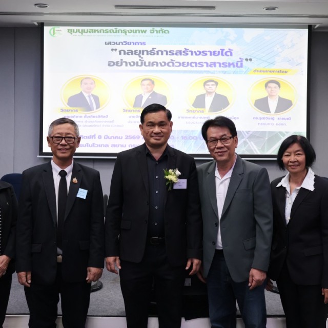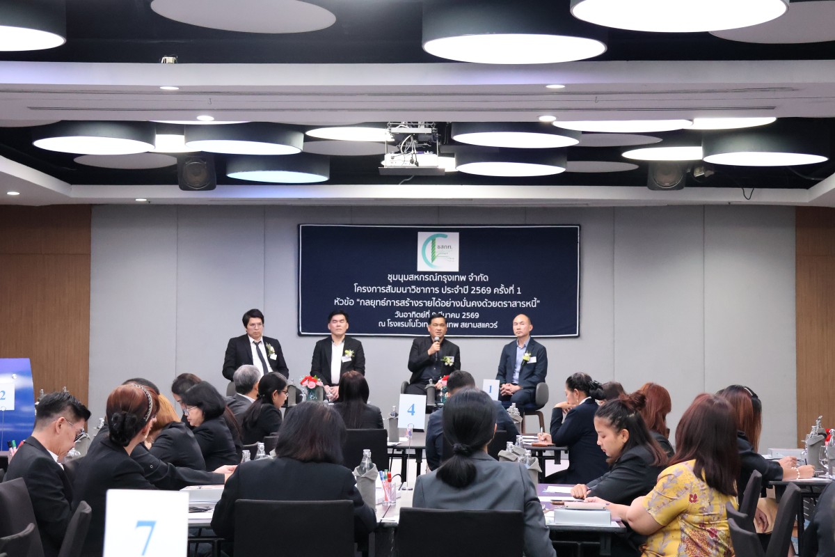 เมื่อวันอาทิตย์ที่ 8 มีนาคม 2569 เวลา 09.00 น. ชุมนุมสหกรณ์กรุงเทพ จำกัด จัดสัมมนาวิชาการประจำปี 2569 ครั้งที่ 1 หัวข้อ “กลยุทธ์การสร้างรายได้อย่างมั่นคงด้วยตราสารหนี้” โดยมีวัตถุประสงค์เพื่อเป็นการแลกเปลี่ยนความรู้ ประสบการณ์ และมุมมองจากผู้เชี่ยวชาญด้านการลงทุน ถ่ายทอดแนวคิดและกลยุทธ์ที่สามารถนำไปประยุกต์ใช้ได้จริง ได้รับเกียรติจากวิทยากร ผู้ทรงคุณวุฒิ คุณอภิชาต ตั้งเกียรติศิลป์ กรรมการผู้จัดการ จาก บลจ.เคจีไอ (ประเทศไทย), คุณจักรินทร์ รักขาว ประธานกรรมการ ชสกท. และนายแพทย์มาณพพ์ เงินวิวัฒน์กูล ประธานกรรมการ สอ.สภากาชาดไทย จำกัด ร่วมเสวนา และ ดร.วุฒิวิชญ์ ราชมณี กรรมการดำเนินการ ชสกท. เป็นผู้ดำเนินรายการ