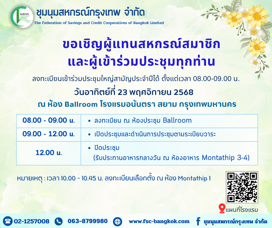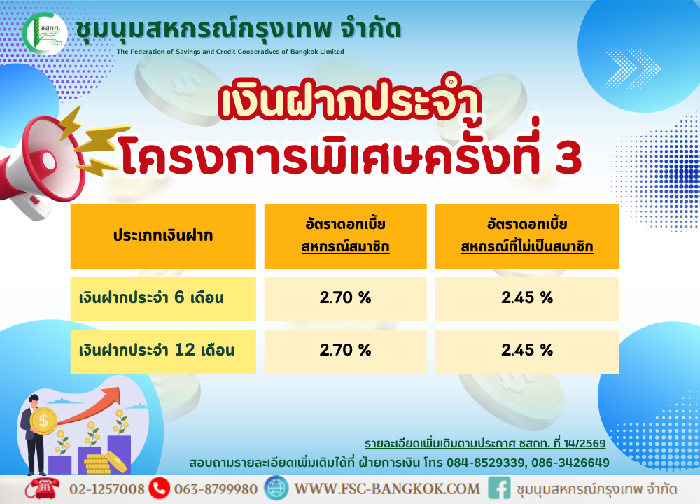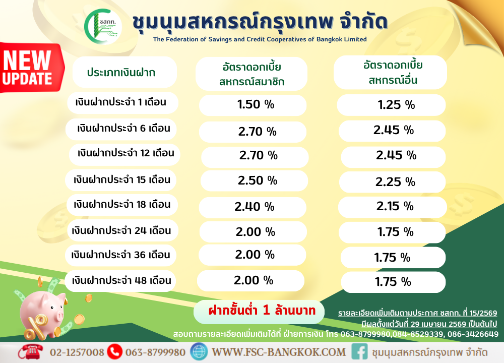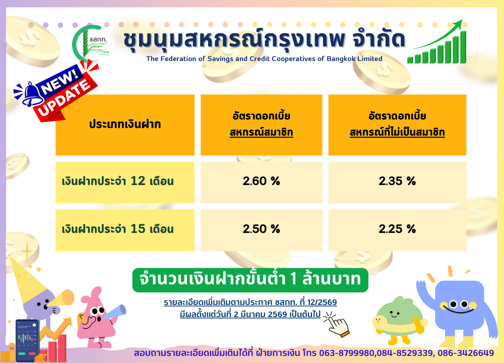 บัญชีเงินฝากธนาคารของชุมนุมสหกรณ์กรุงเทพ จำกัด