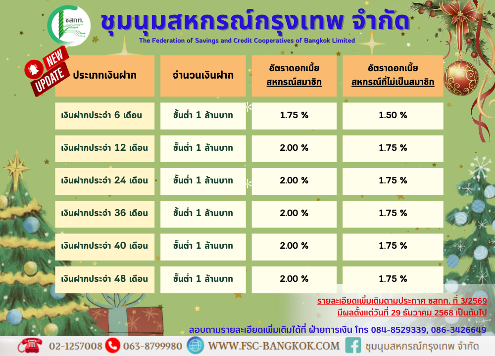 บัญชีเงินฝากธนาคารของชุมนุมสหกรณ์กรุงเทพ จำกัด