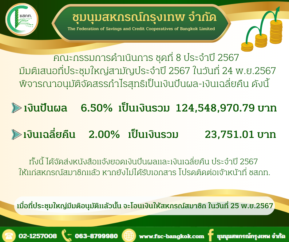 เงินปันผลและเฉลี่ยคืนประจำปี 2567