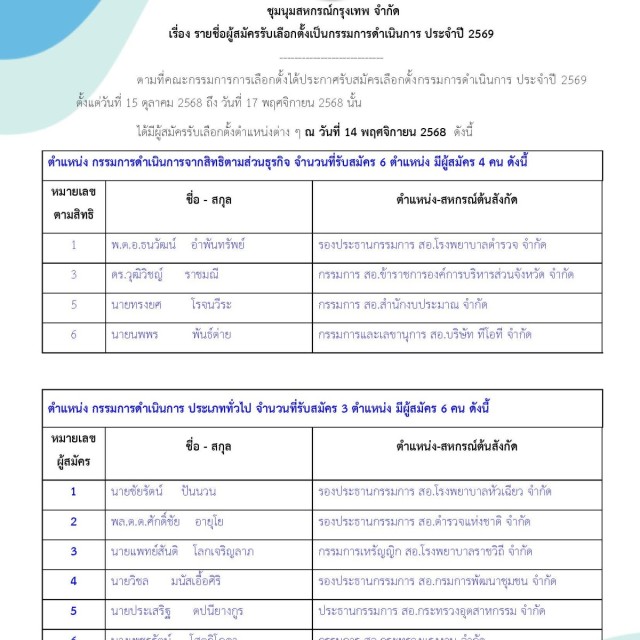 ประกาศ เรื่อง ผลการเลือกตั้งผู้ตรวจสอบกิจการ ประจำปี 2568
