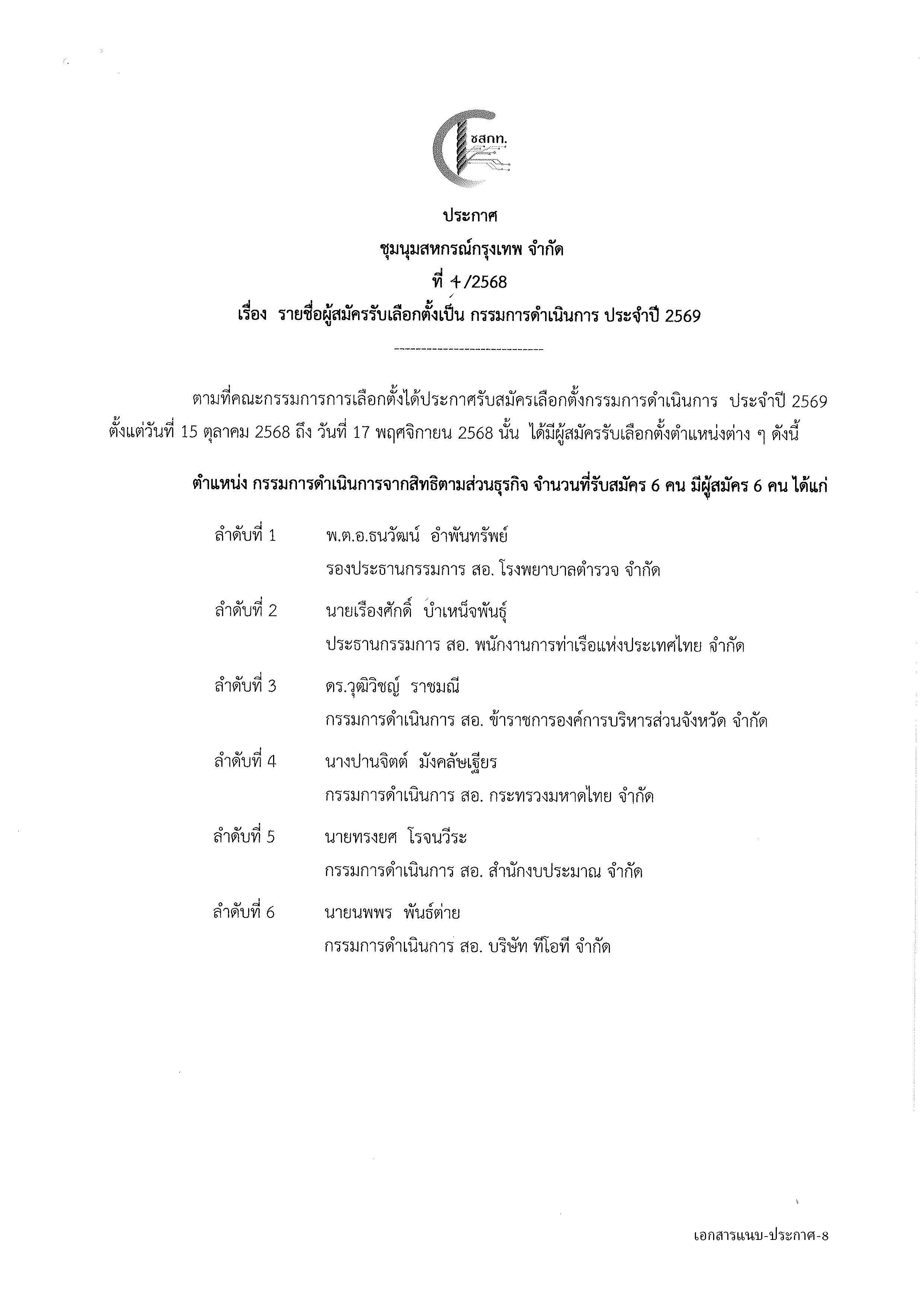 ประกาศรายชื่อผู้สมัคร กรรมการดำเนินการประจำปี 2569