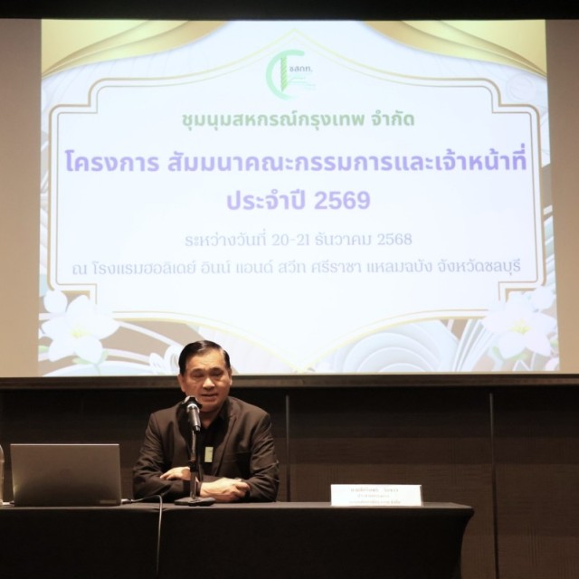 ชุมนุมสหกรณ์กรุงเทพ จำกัด ได้จัดโครงการสัมมนาคณะกรรมการและเจ้าหน้าที่ ประจำปี 2569 เมื่อวันเสาร์ที่ 20 ธันวาคม 2568 ณ โรงแรมฮอลิเดย์ อินน์ แอนด์ สวีท ศรีราชา จ.ชลบุรี นำโดย