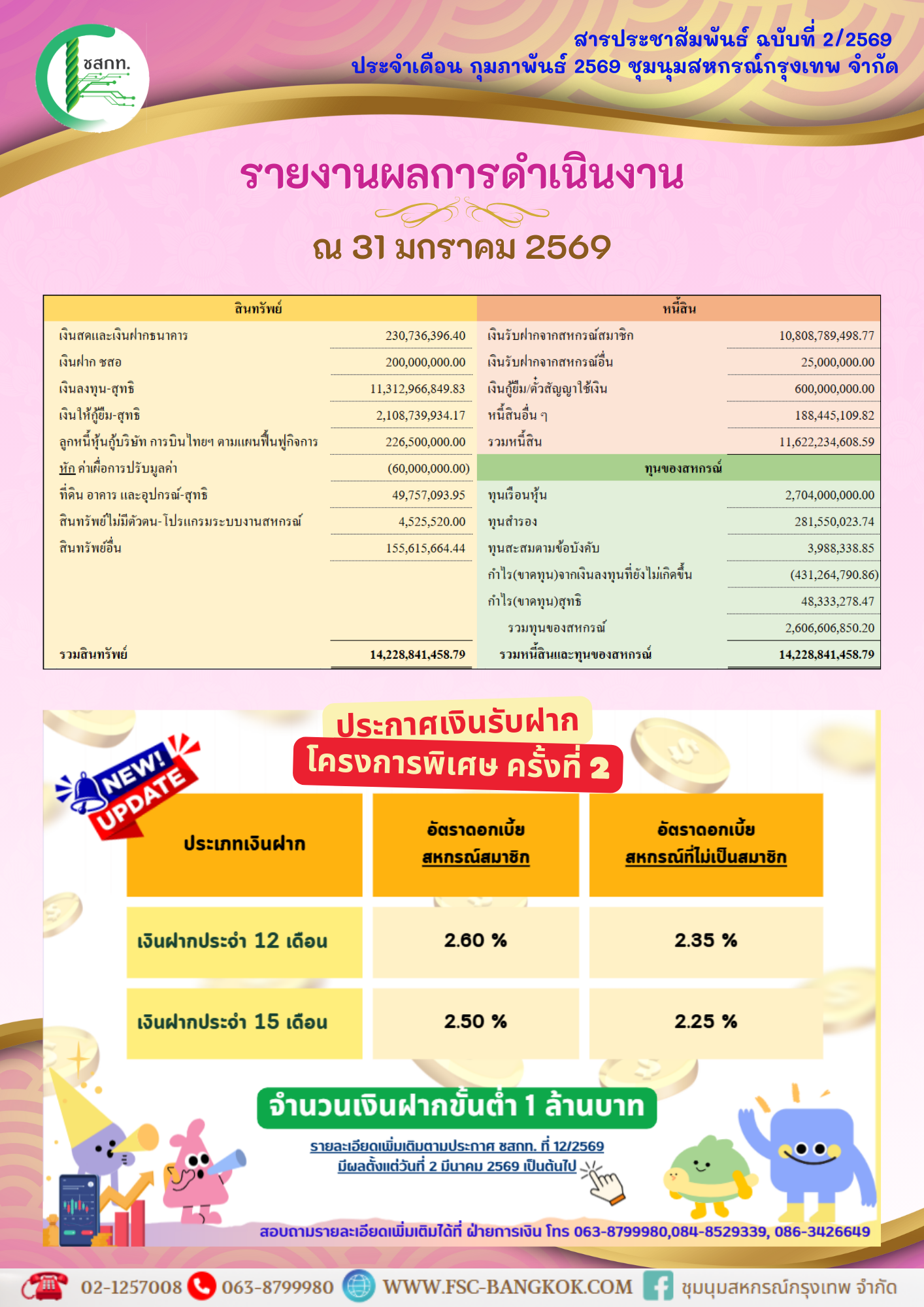 สารประชาสัมพันธ์ ฉบับที่ 2/2569 ประจำเดือน กุมภาพันธ์ 2569 ชุมนุมสหกรณ์กรุงเทพ จำกัด
