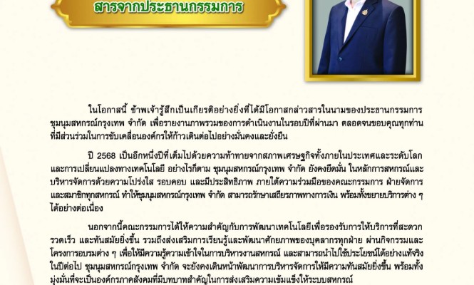 เมื่อวันอาทิตย์ที่ 23 พฤศจิกายน 2568 เวลา 08.00-12.30 น. ชุมนุมสหกรณ์กรุงเทพฯจำกัด จัดประชุมใหญ่สามั...