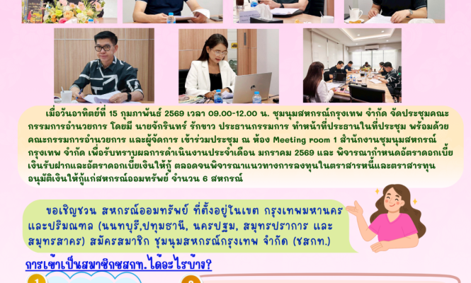 ชุมนุมสหกรณ์กรุงเทพ จำกัด ได้จัดโครงการสัมมนาคณะกรรมการและเจ้าหน้าที่ ประจำปี 2569 เมื่อวันเสาร์ที่ ...